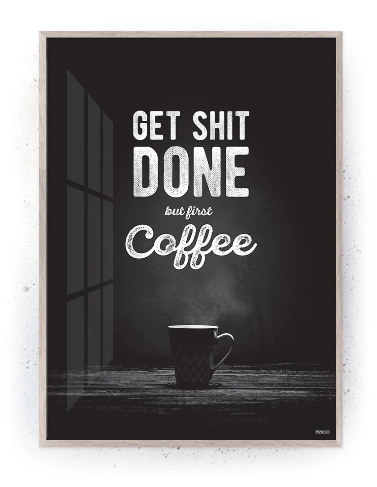 Get shit done… But first Coffee (Stort billede – plakat / lærredsprint)