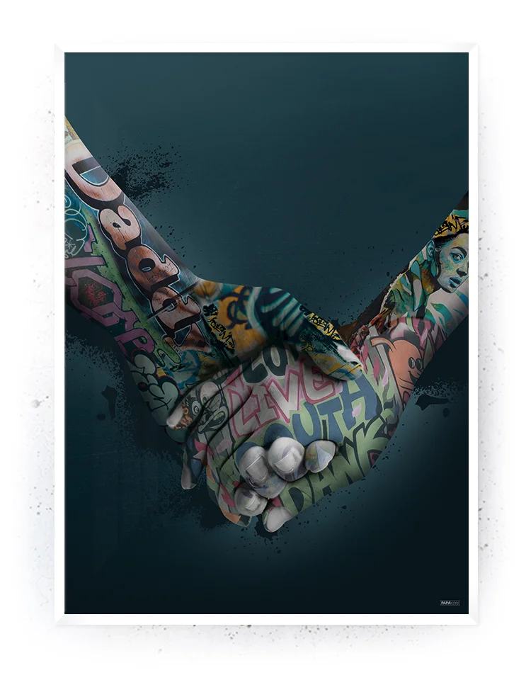 Holding Hands (Plakat/Lærredsprint). Kan bestilles som stort billede eller plakat. Grafitti Kunstværk / Artwork (Lærredsprint/canvas) fra serien Statements, med de farverige grafitti elementer.