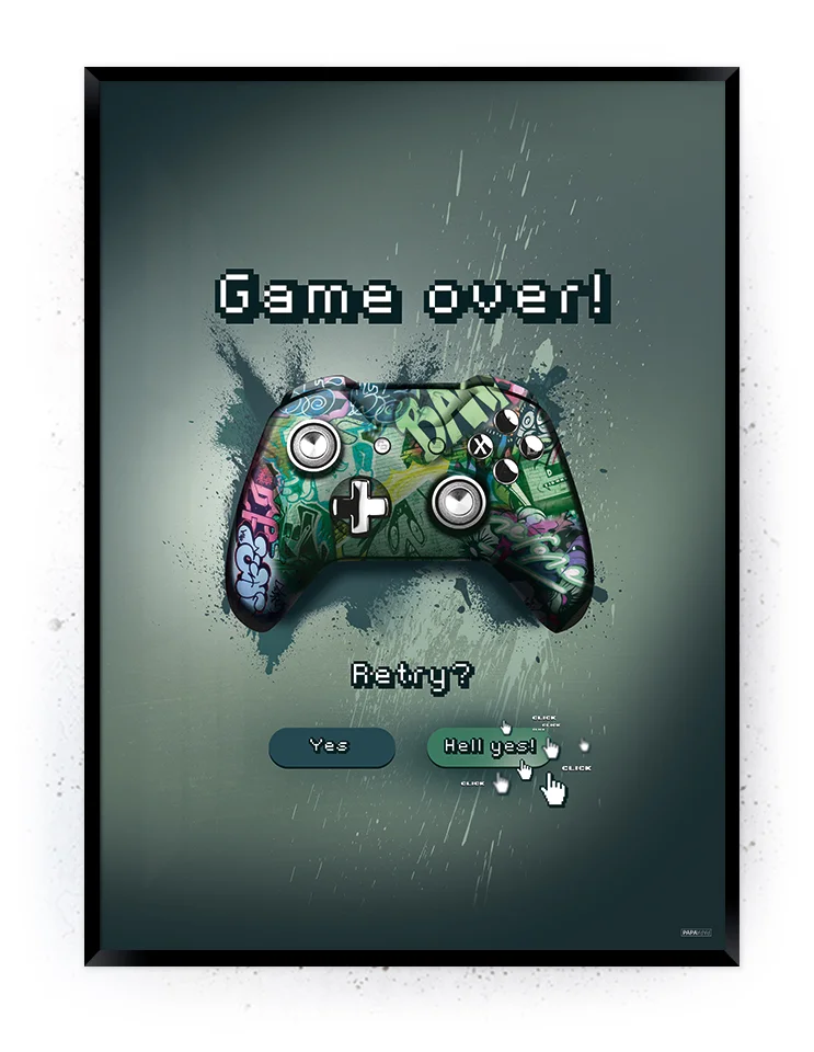 Sjove og anderledes gamer plakater. Markedet flyder over med kedelige Gamer plakater – mange fx i sort/hvid. Vi tror på at Gamerne, heller vil have noget med farver og flot grafisk design, lige som deres gamer udstyr lyser op i mange farver og deres spil er i god grafik! !