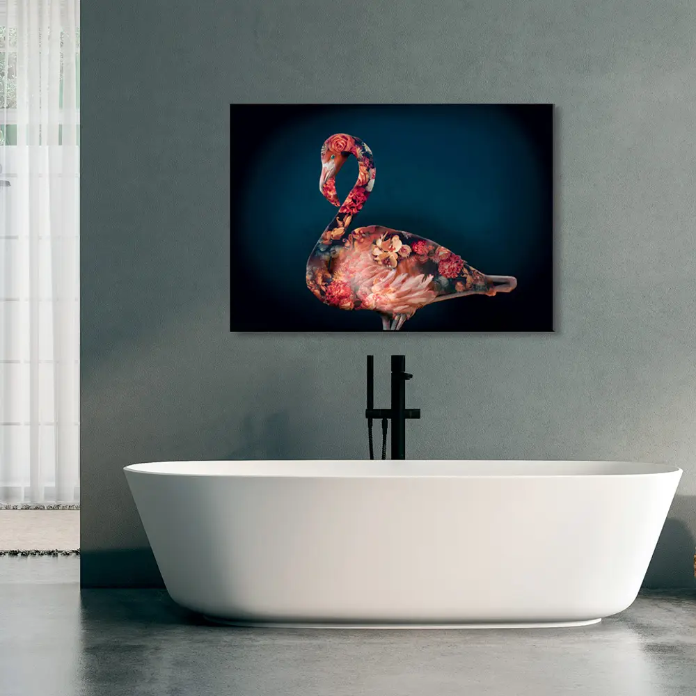 Flamingo (Plakat/Lærredsprint). Kan bestilles som stort billede eller plakat. Smukt Kunstværk / Artwork (Lærredsprint/canvas) fra mini serien Floral Animals, med de smukke blomsterige dyremotiver.