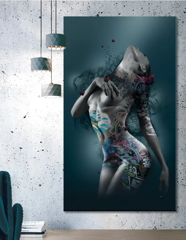 Temptation II (Plakat/Lærredsprint). Kan bestilles som stort billede eller plakat. Grafitti Kunstværk / Artwork (Lærredsprint/canvas) fra serien Statements, med de farverige grafitti elementer.
