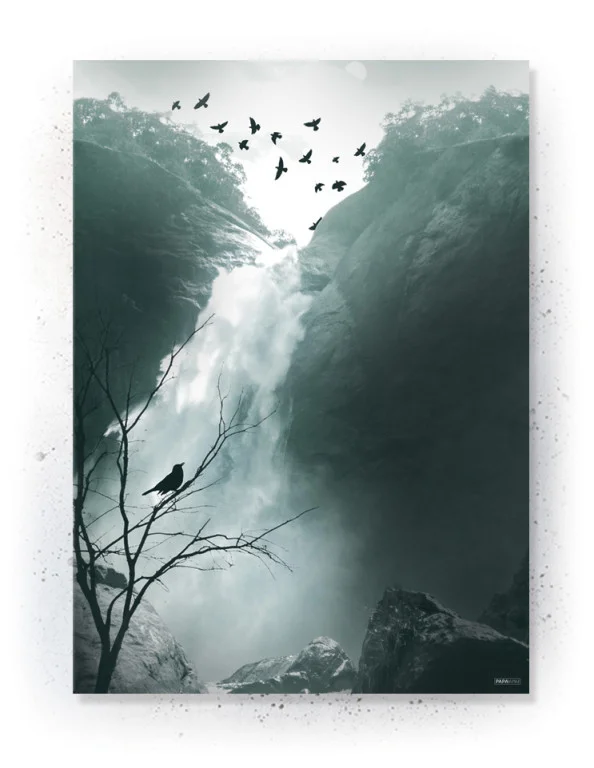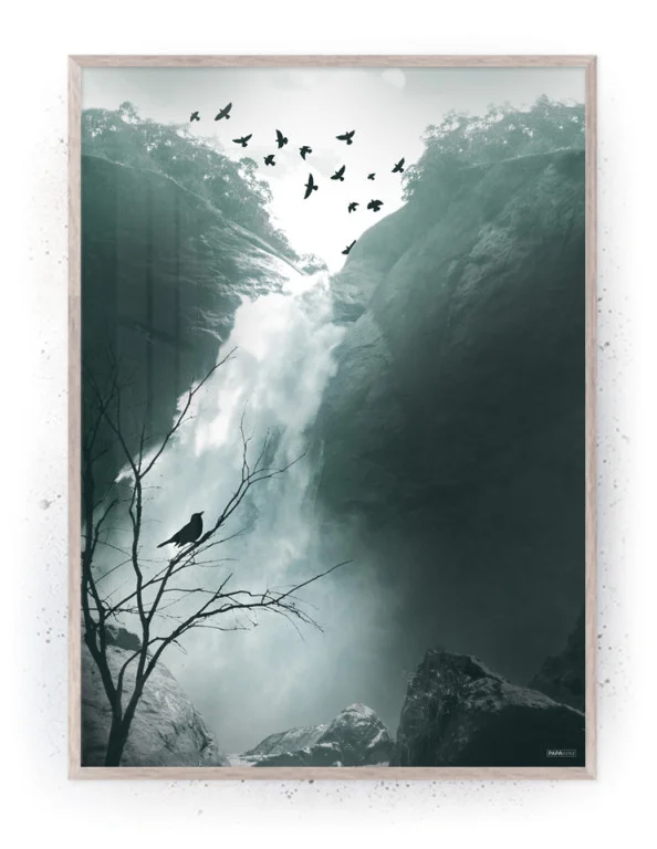 Vandfald & fugle (Stort billede – plakat / lærredsprint)